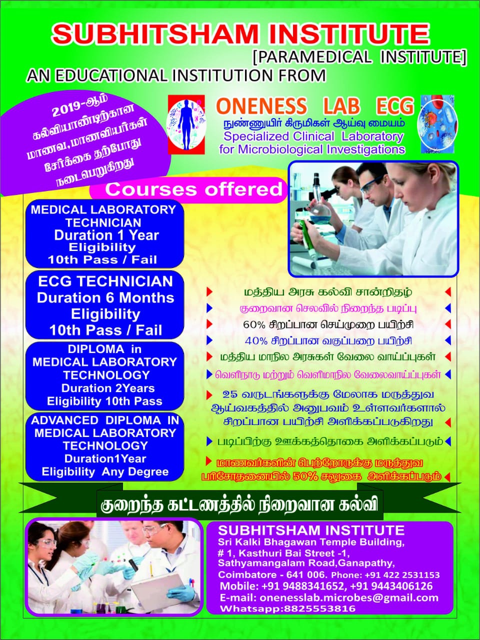 Oneness Microbes Diagnostics is unique and modernized. Has been approved and accredited by relevant Government and Statutory bodies and includes the desired leading. (e.g. Blood, Urine, Sputune, Earslaps, etc.)